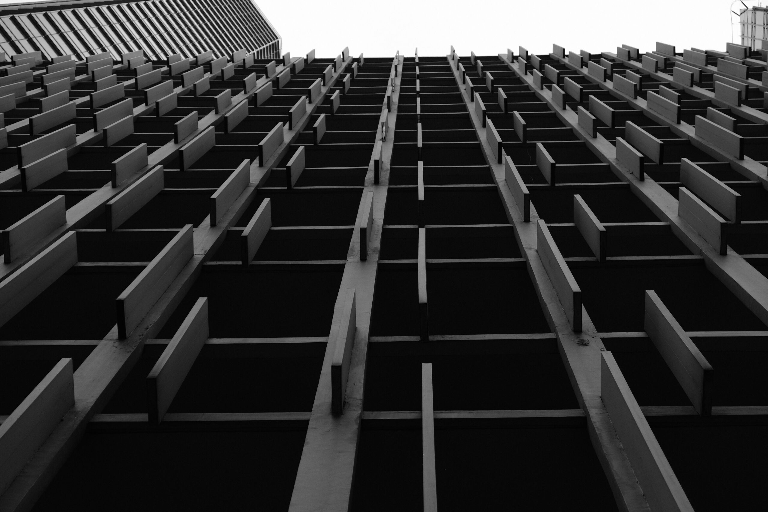 Your black and white treatment further highlights order, geometry, and contrast, allowing façade patterns and urban density to take visual priority over color.