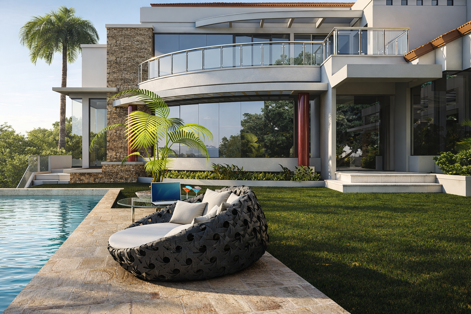 Laz Terrazas Manor represents a comprehensive residential renovation project developed for Ram Lu Builders. The visualization scope included both exterior and interior architectural perspectives, translating the design intent into clear and compelling visual representations. Positioned on an elevated site, the residence emphasizes layered terraces, stepped circulation, and panoramic views that integrate the architecture with the surrounding landscape.