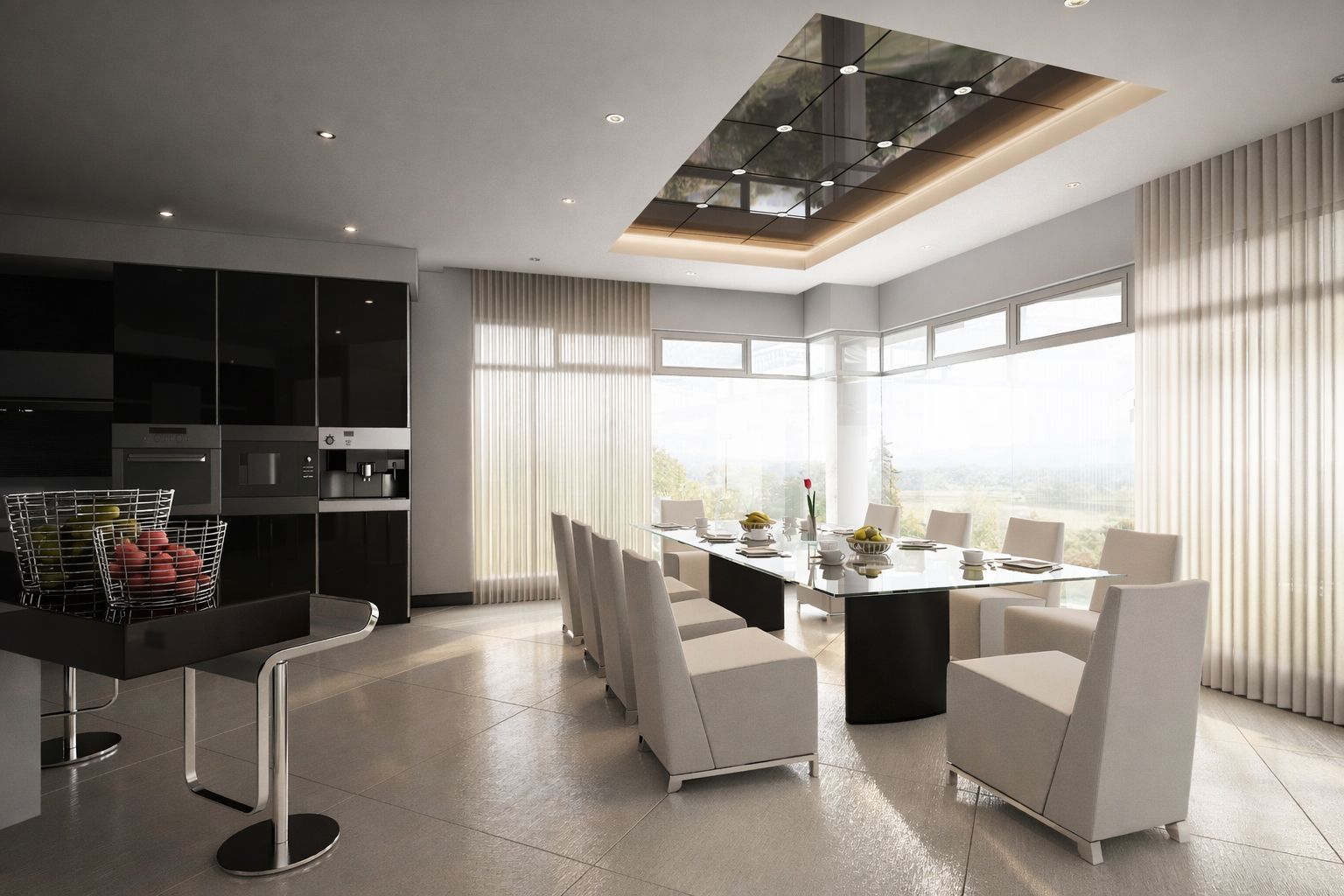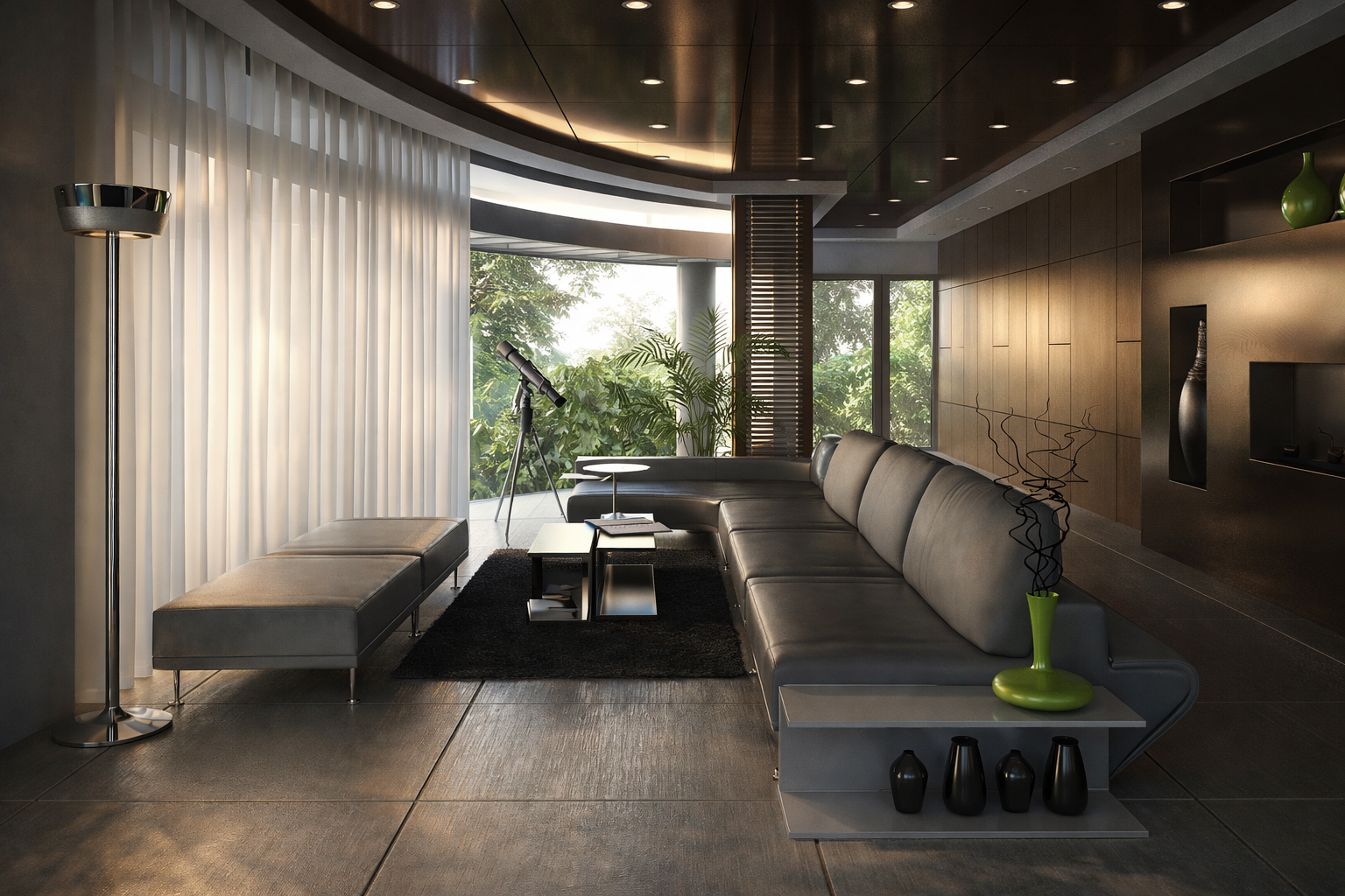 • Atmospheric visualization highlighting lighting and material realism